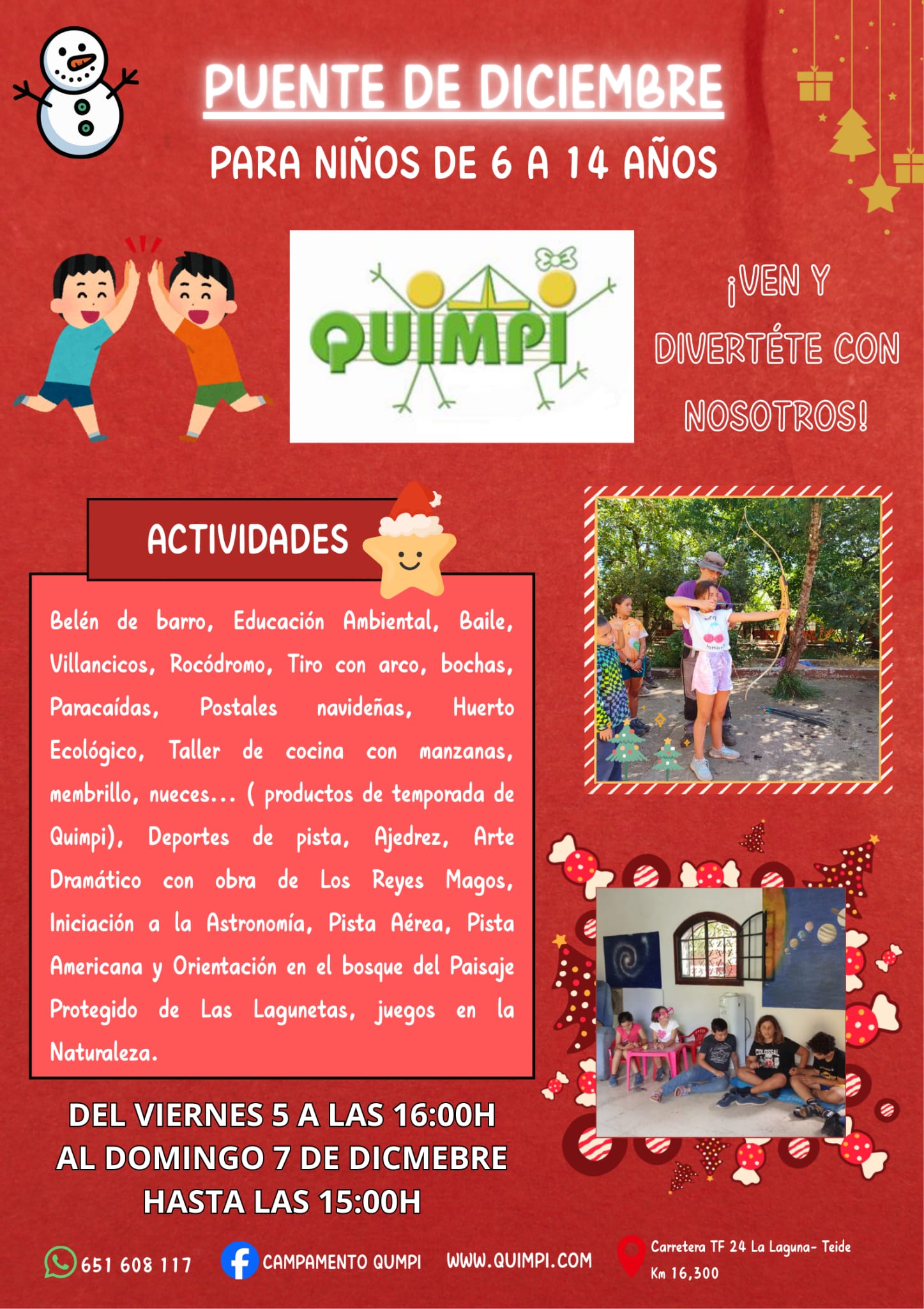 La familia Quimpi (Pilarín, Quim e hijos), ya son más de 2 décadas en los que hemos convertido un campamento en un lugar mágico en el cual ofrecemos en un entorno privilegiado, seguro y entre la ciudad y la base del Teide.